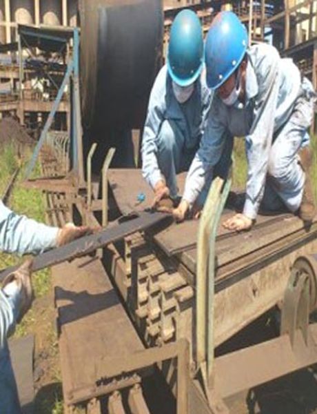 行車軌道鋁熱焊焊接技術(shù):常規(guī)碳鋼焊接軌道接頭,在行車運(yùn)行頻繁區(qū)域或大噸位行車運(yùn)行區(qū)域極易斷裂,焊接頻繁,導(dǎo)致行車行走輪、水平輪調(diào)整更換次數(shù)多,人員投入較大,勞動(dòng)強(qiáng)度高,且存在高空臨邊作業(yè)的安全隱患等因素。分公司引進(jìn)吸收鐵路路軌焊接技術(shù),并先后實(shí)施焊接接頭改造約700個(gè),實(shí)踐檢驗(yàn)后效果良好。